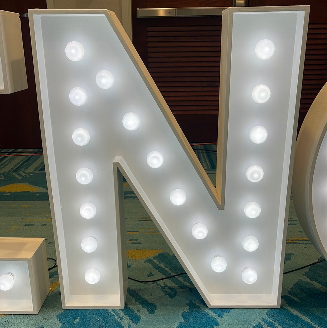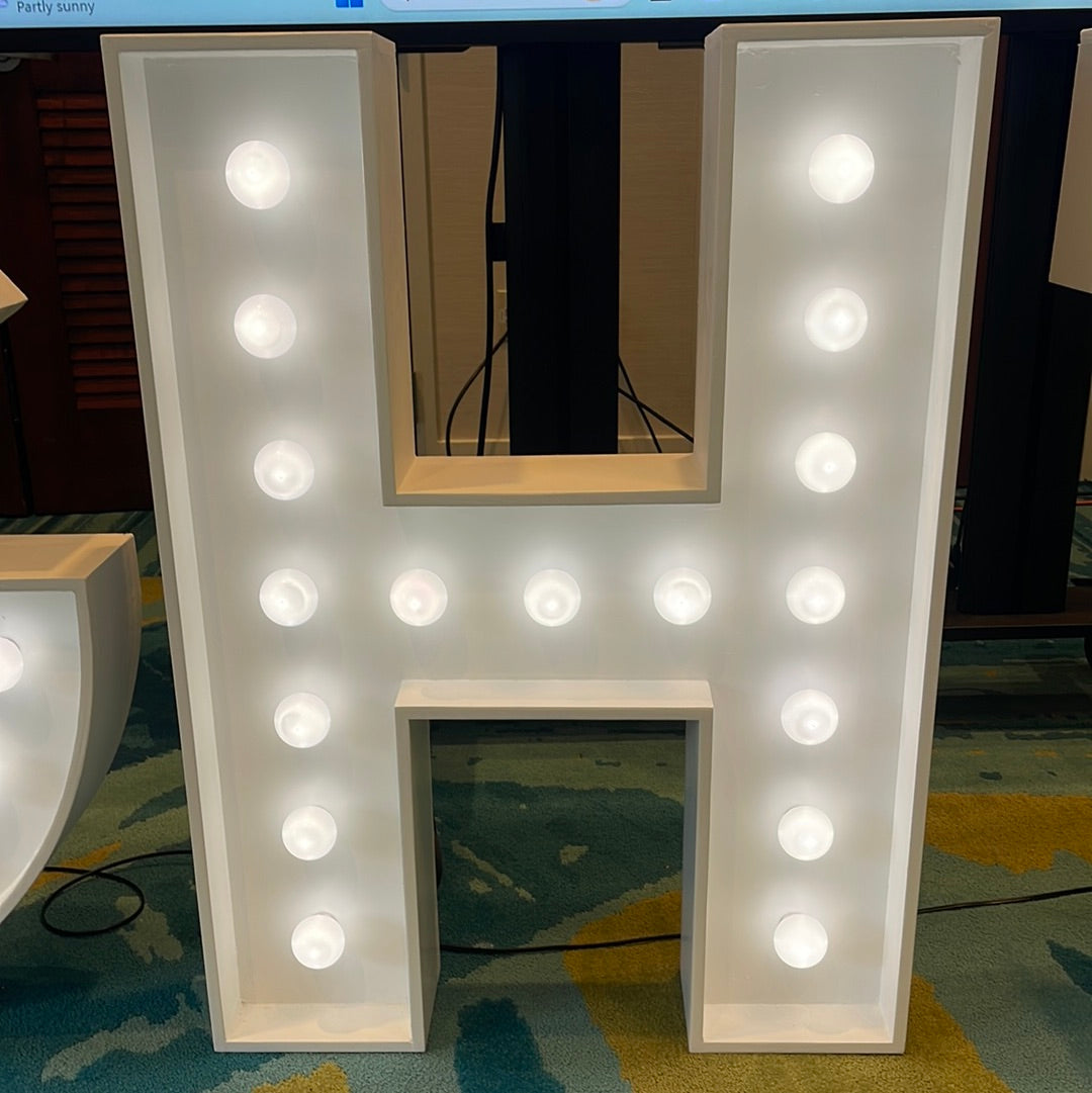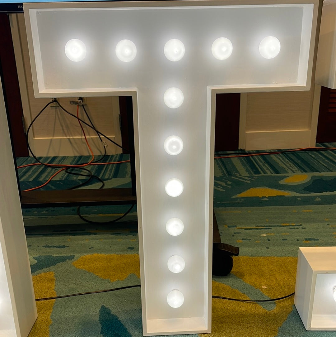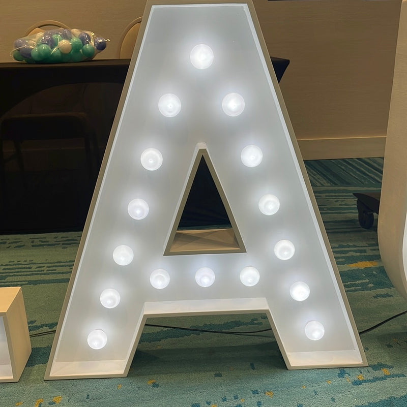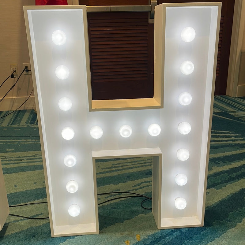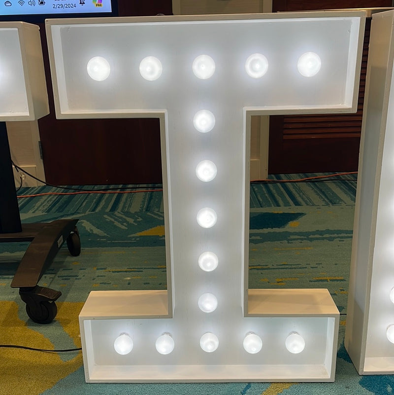 Looking for something simple and unique for your event? Marquee letters are a great addition to many events and venues. Buy single 36 inch letters to spell out a phrase of buy a whole set to add to your event lighting setup. White 36 inch tall letters with warm white lighting to add a nice touch at events. These wood frames are extremely durable and great for stacking