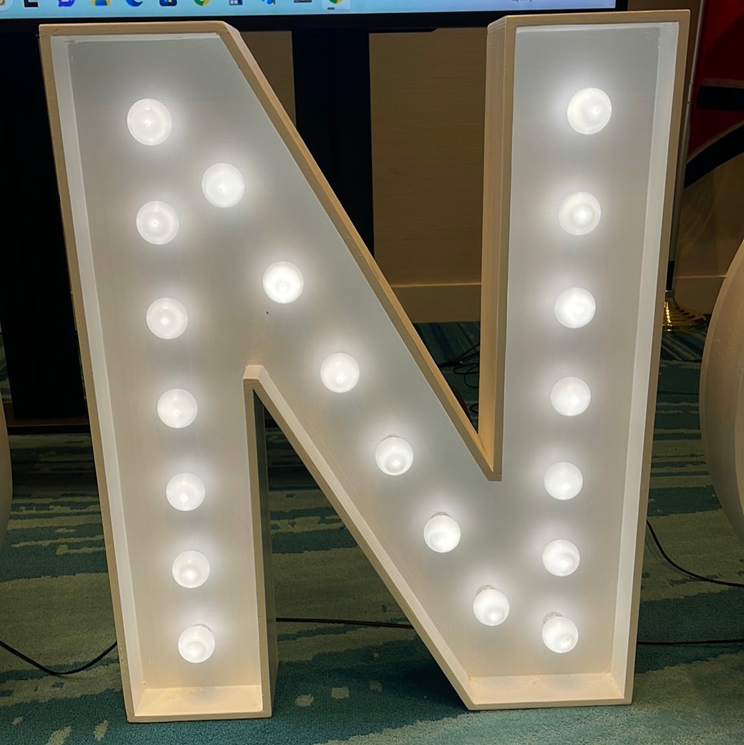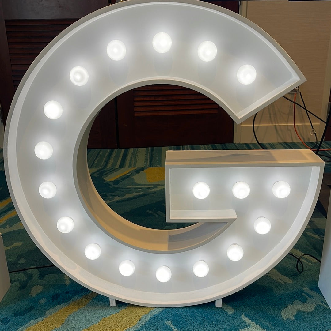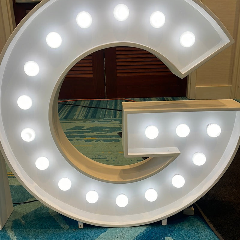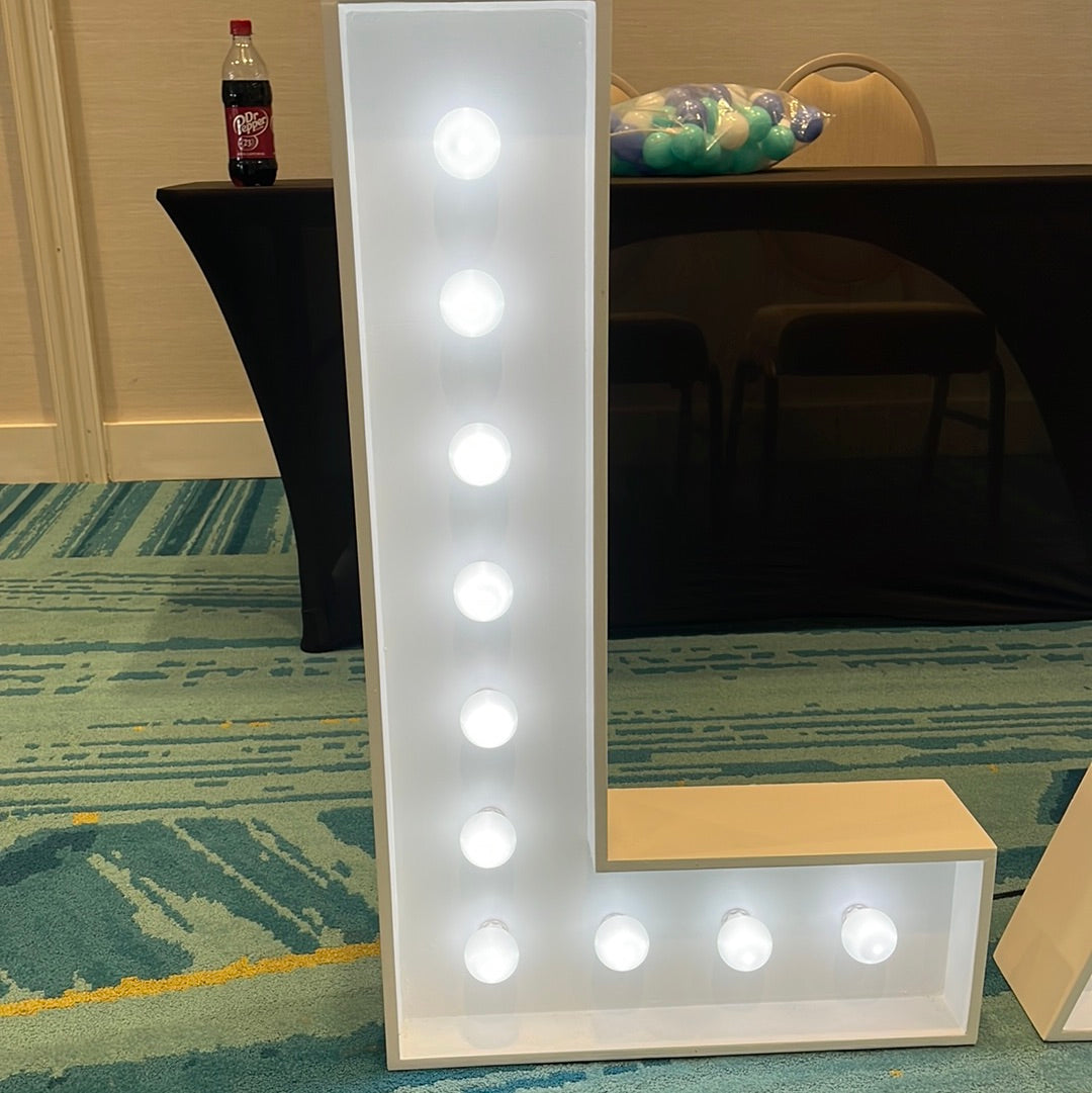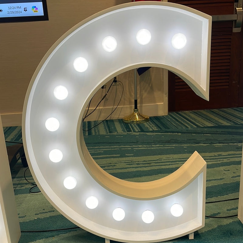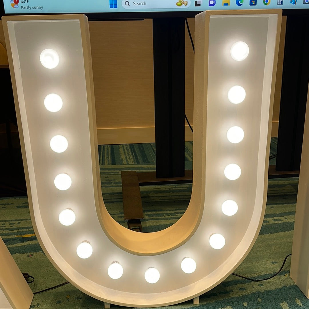 Looking for something simple and unique for your event? Marquee letters are a great addition to many events and venues. Buy single 36 inch letters to spell out a phrase of buy a whole set to add to your event lighting setup. White 36 inch tall letters with warm white lighting to add a nice touch at events. These wood frames are extremely durable and great for stacking