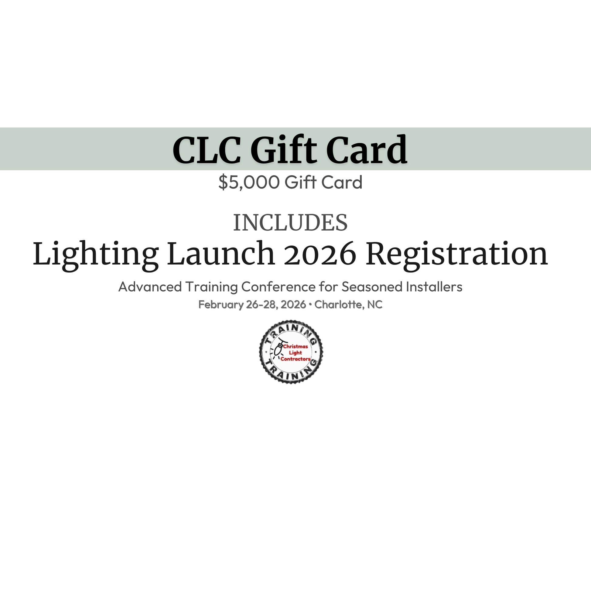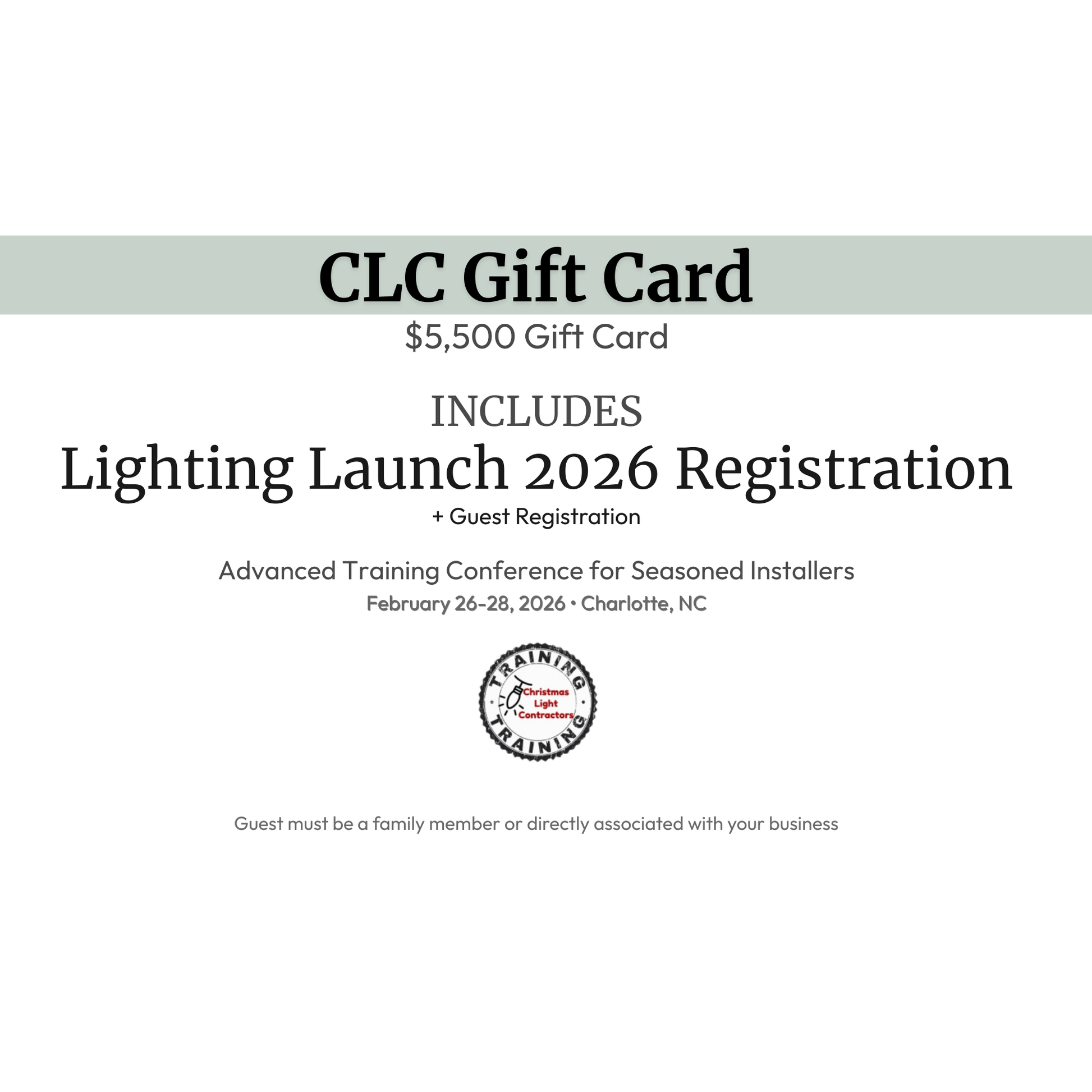 CLC Gift Cards may be used toward eligible CLC products and training. Lighting Launch 2026 registration is included at no additional cost with this purchase.