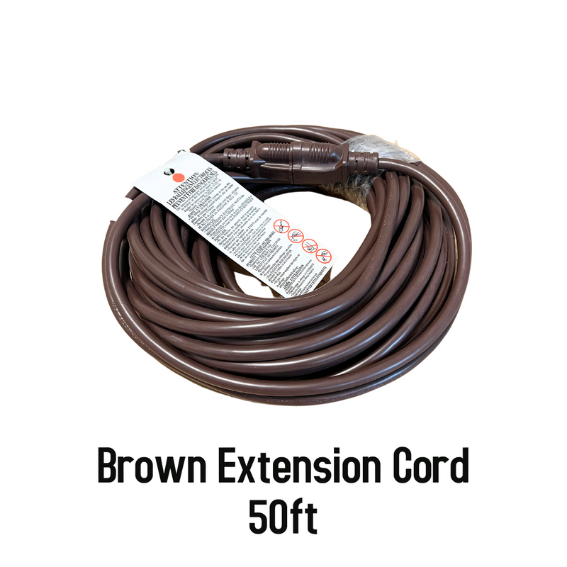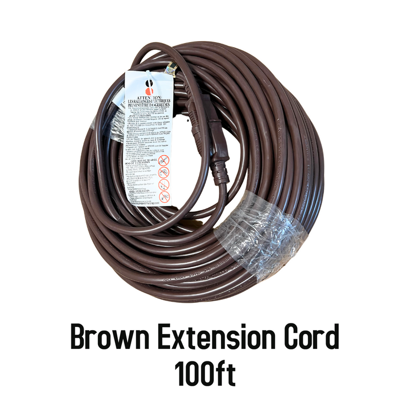 Illuminate your outdoor space effortlessly with our brown Grounded Extension Cords. With a maximum capacity of 1500 watts (13 Amps), these cords provide a safe and reliable power source for your outdoor lighting needs.