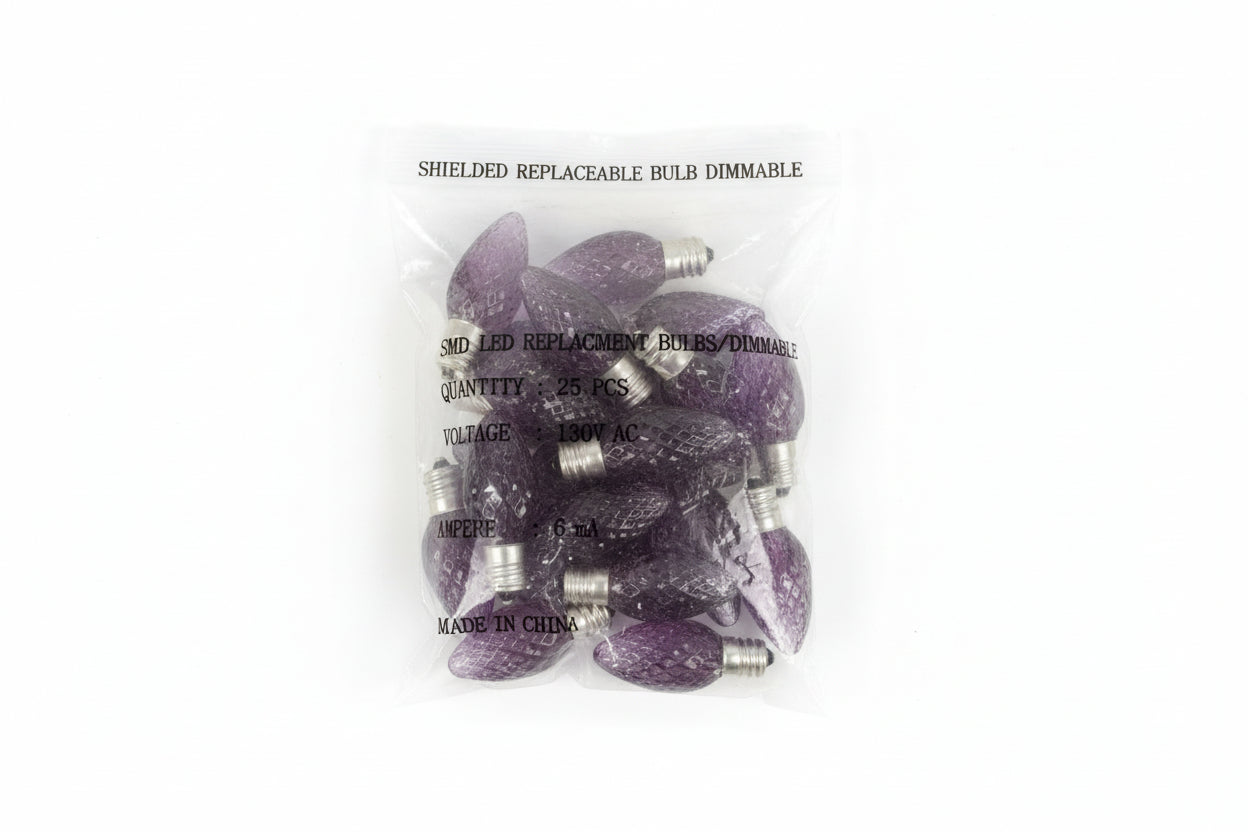 C7 Purple Replacement Bulbs, Lot of 125, Reboxed- FINAL SALE