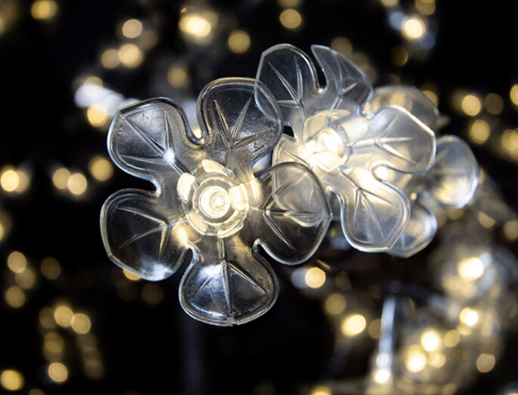 Replace the traditional Christmas tree with this unique alternative! Use this tree to add a vibrant, warm glow at any special occasion. Designed for indoor and outdoor use, this artistic imitation of nature is great in both commercial and residential settings, whether in a lobby or featured in a landscaped garden as a permanent statement piece. The main electrical components are hidden away within the heavy-duty trunk center going up to each branch connection, while each floral light set’s exterior branch is wrapped to create a varied display of blooms throughout the piece.