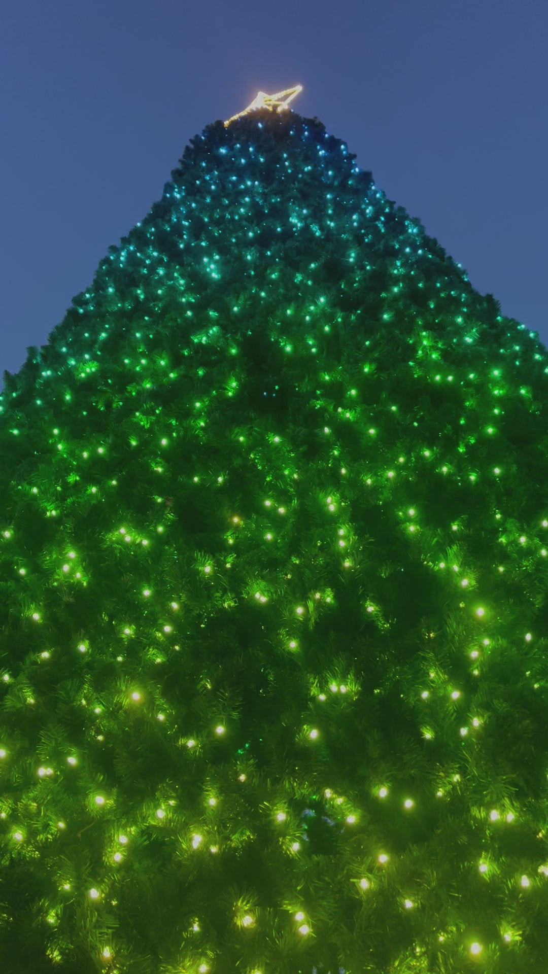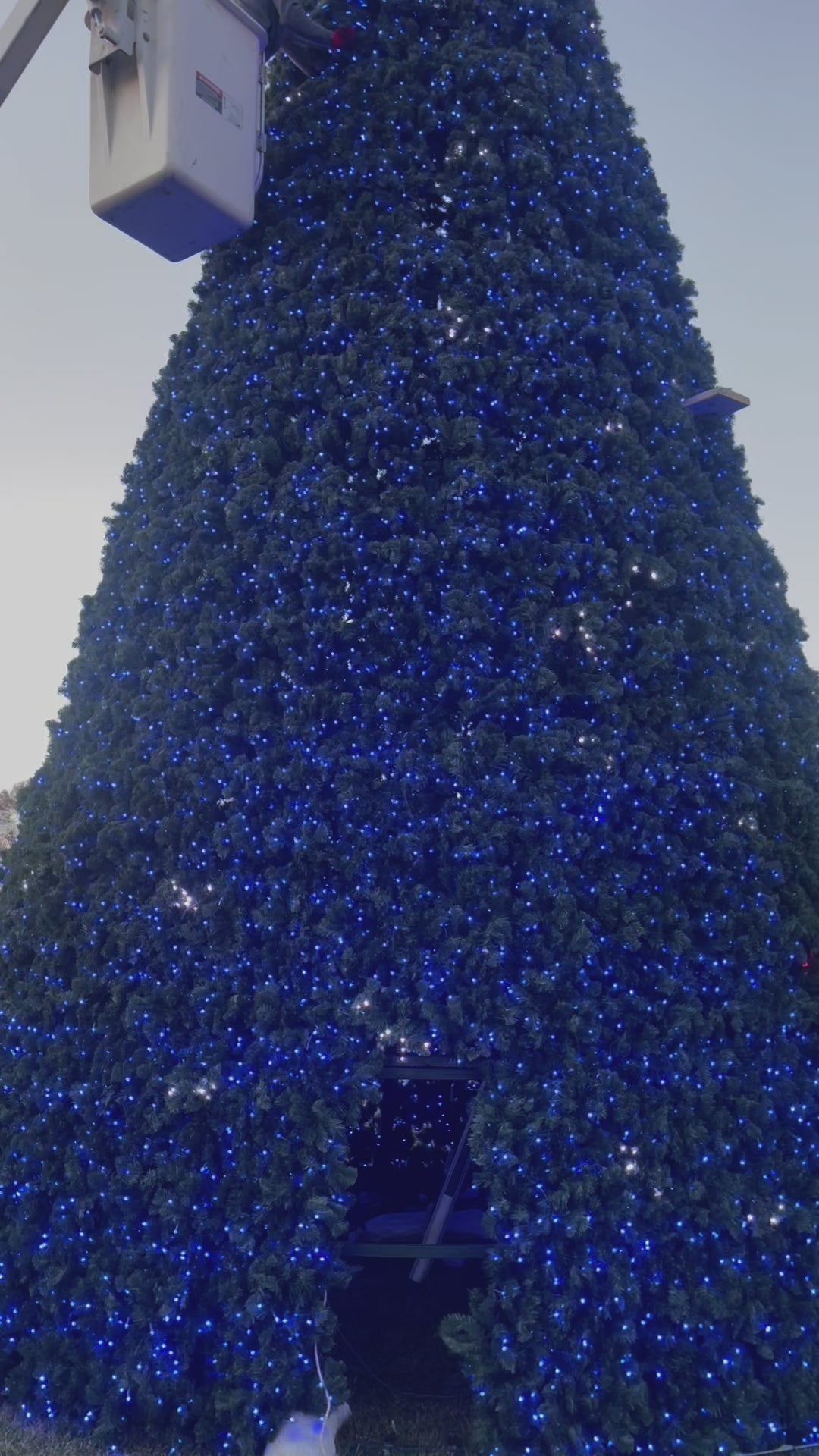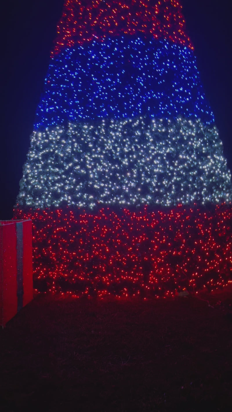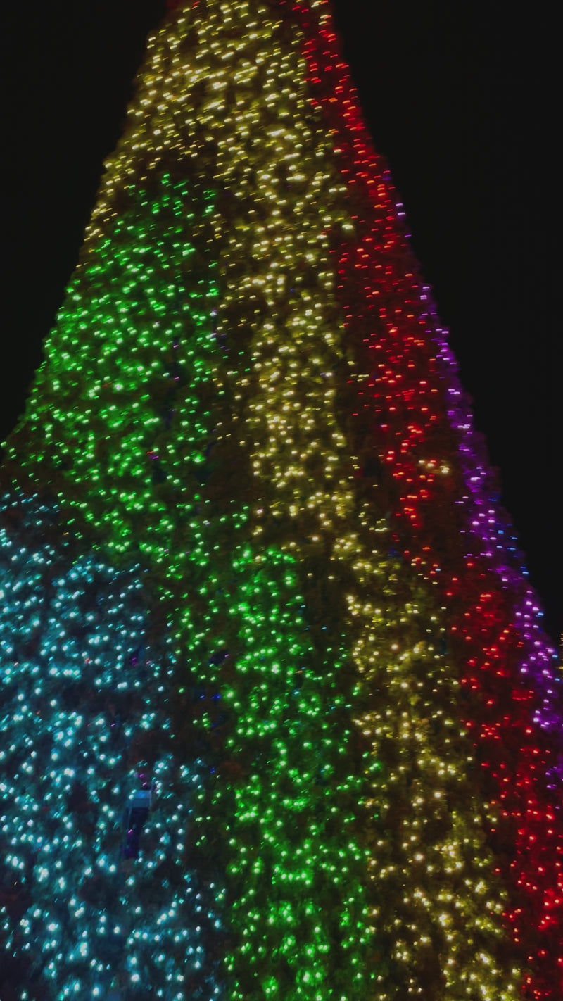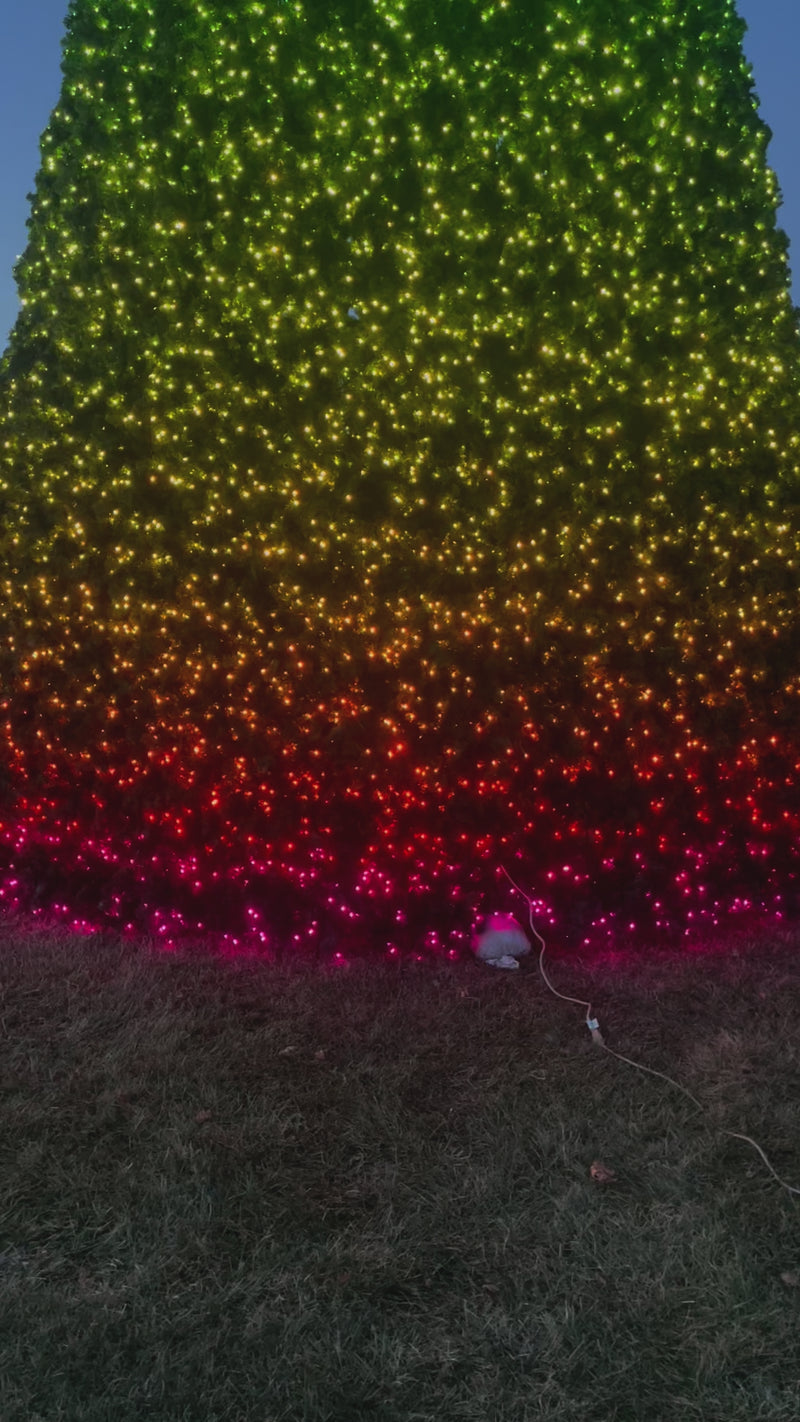 Remote controlled color changing mini lights wrapped on the garland branches. Light sets are a very important component of the tower tree. This color changing RGB tree is a total game changer for the industry. It makes very simple patterns which is the push of a button. No need to hire a computer programmer like other DMX, or ex light trees.