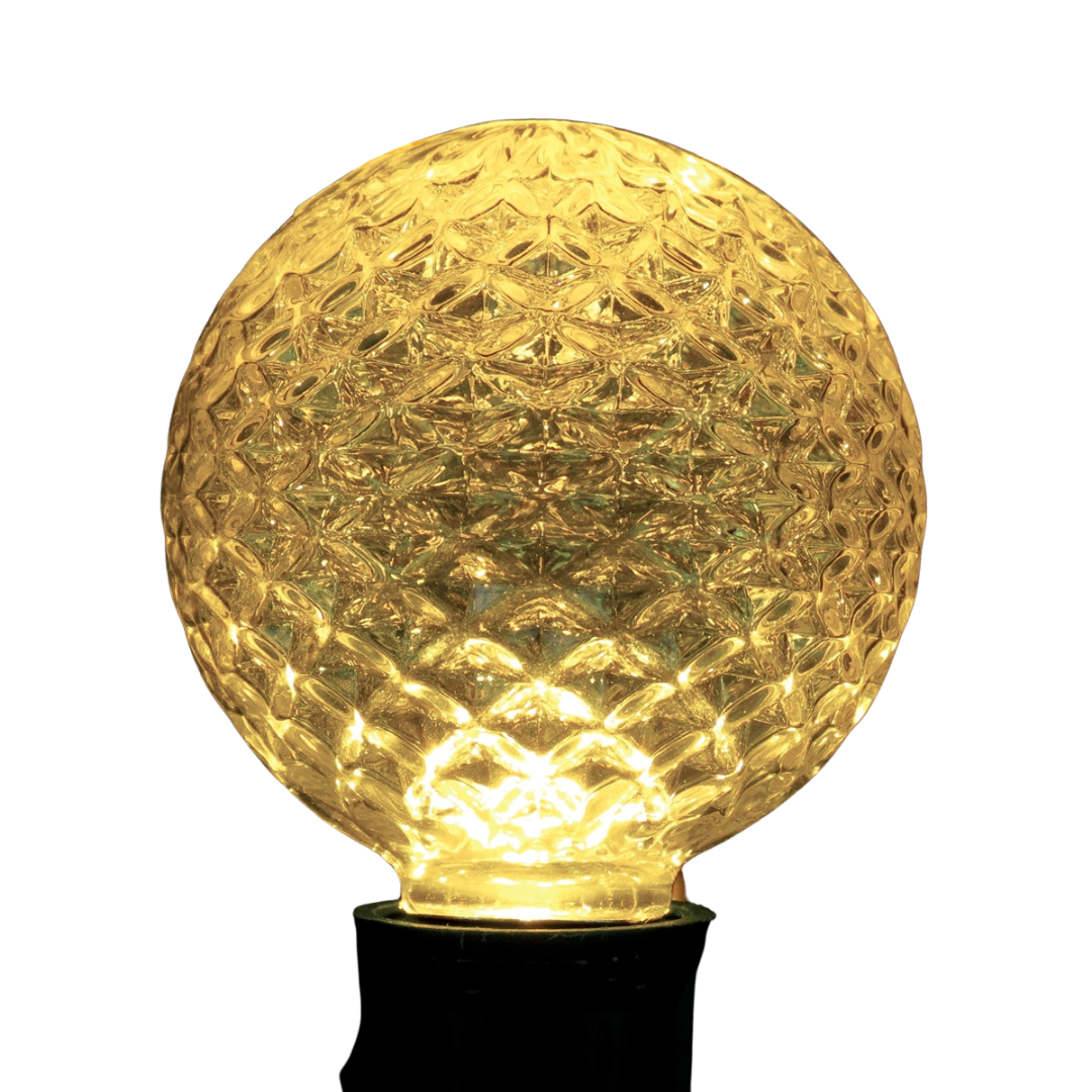 Illuminate your space with the vibrant and durable G50 HBL Bulbs. With a faceted design and e17 base, these bulbs add a touch of style to any setting. Plus, they are dimmable and water resistant for customizable lighting. Create a warm and inviting atmosphere with these stunning bulbs!