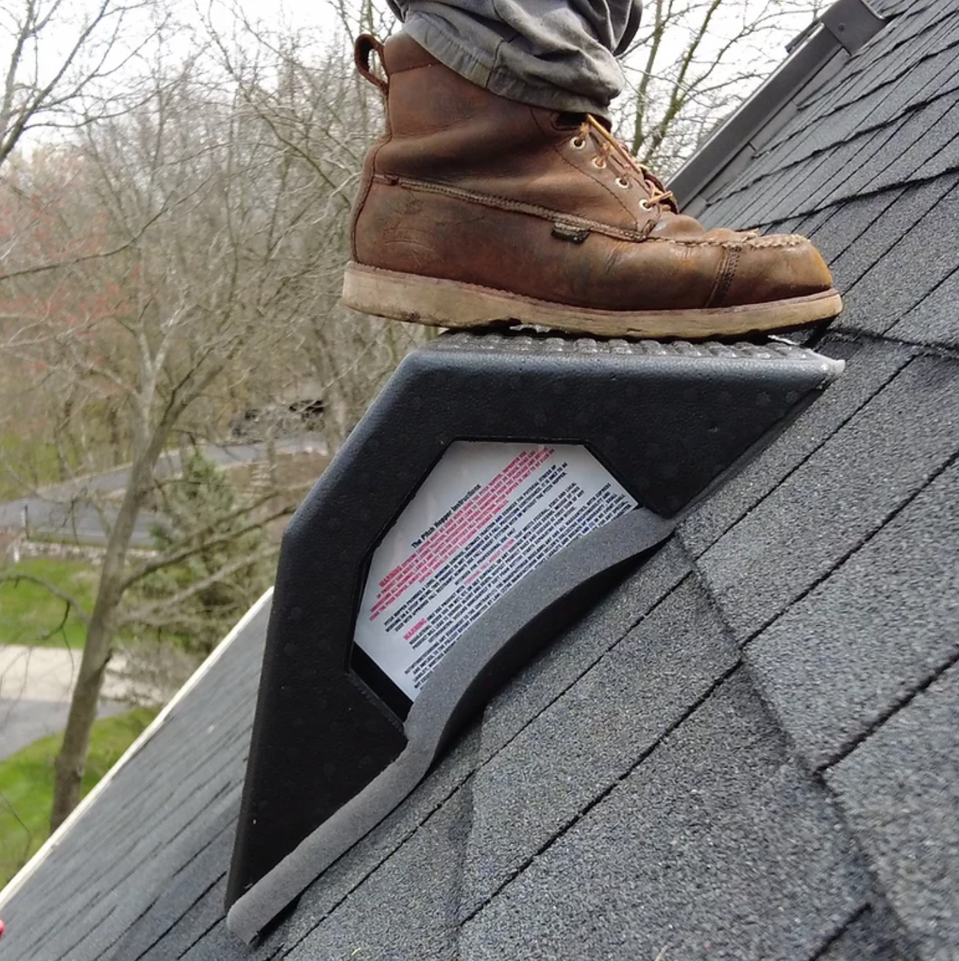 The Pitch Hopper is designed to allow a temporary working surface on asphalt roof surfaces for roof pitches ranging from 'walking pitch' to 12:12. The superior grip surface uses friction force to keep The Pitch Hopper in place. The unique wedge shape features one side for lower pitch and one steeper pitch allowing for easy usage and maximum comfortability.
