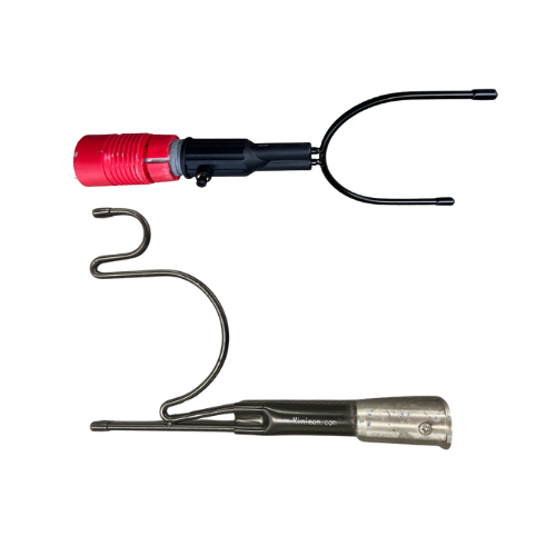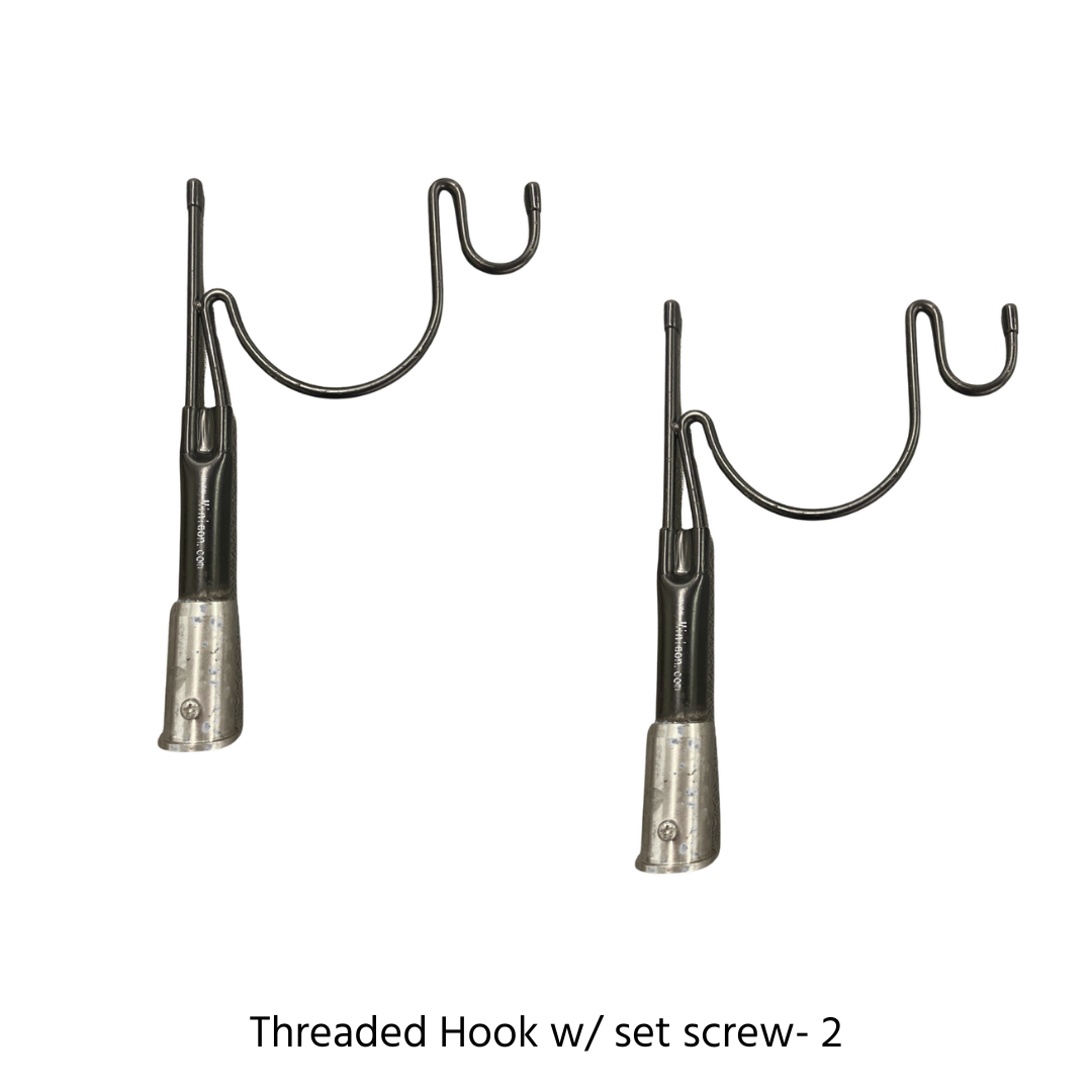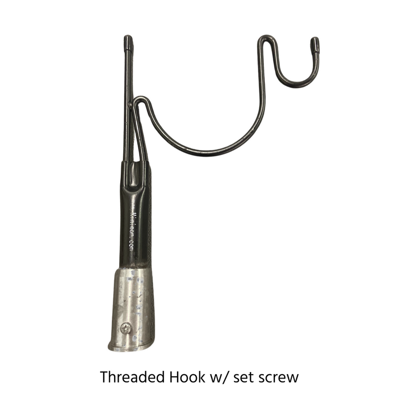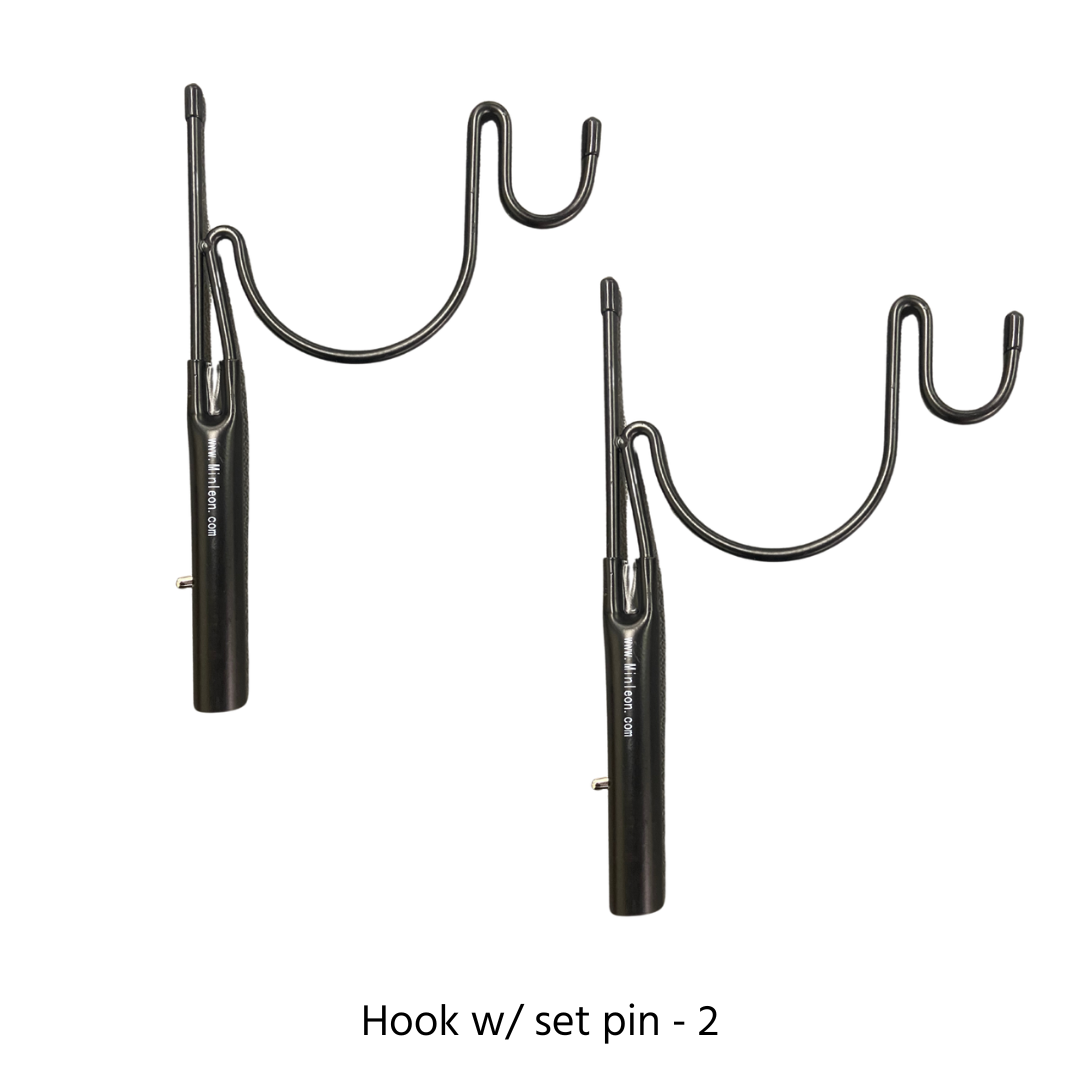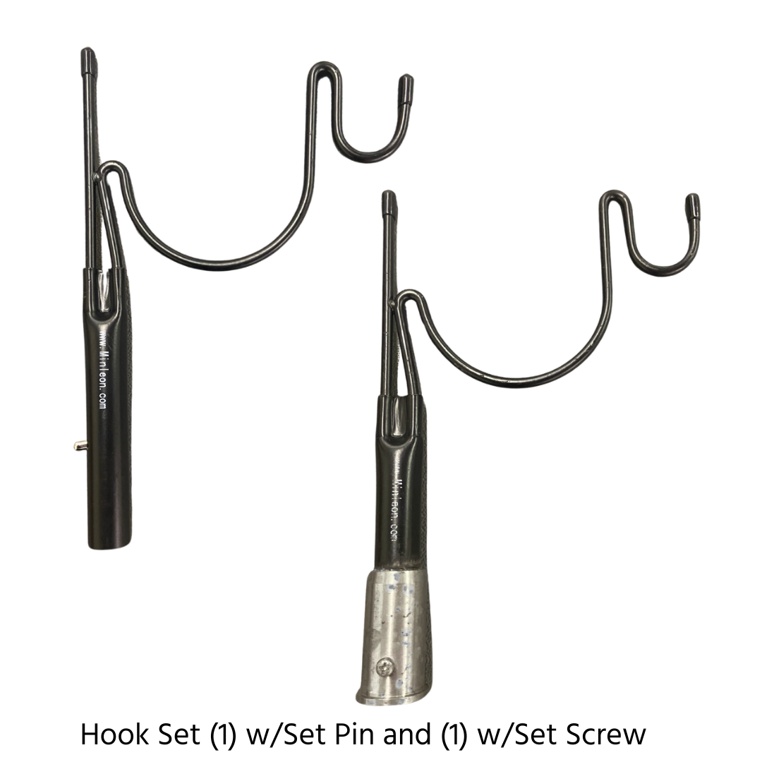 NOTE: The hook with the set pin is compatible with the carbon fiber telescopic pole while the hook with the set screw is compatible with the Mr. Longarm painter's pole.