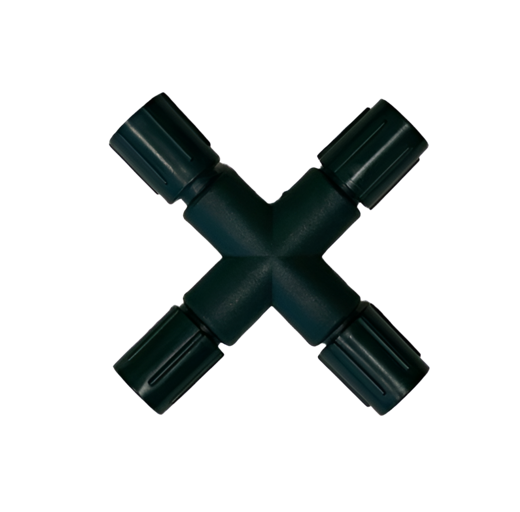 This RGB "X" splitter allows you to split the RGB wire connection so you can run mini lights in parallel in different directions. The same rules apply with the maximum capacity of the controller, so if you could run 14 strands in series before, you can run a combined total of 14 strands going in either direction.