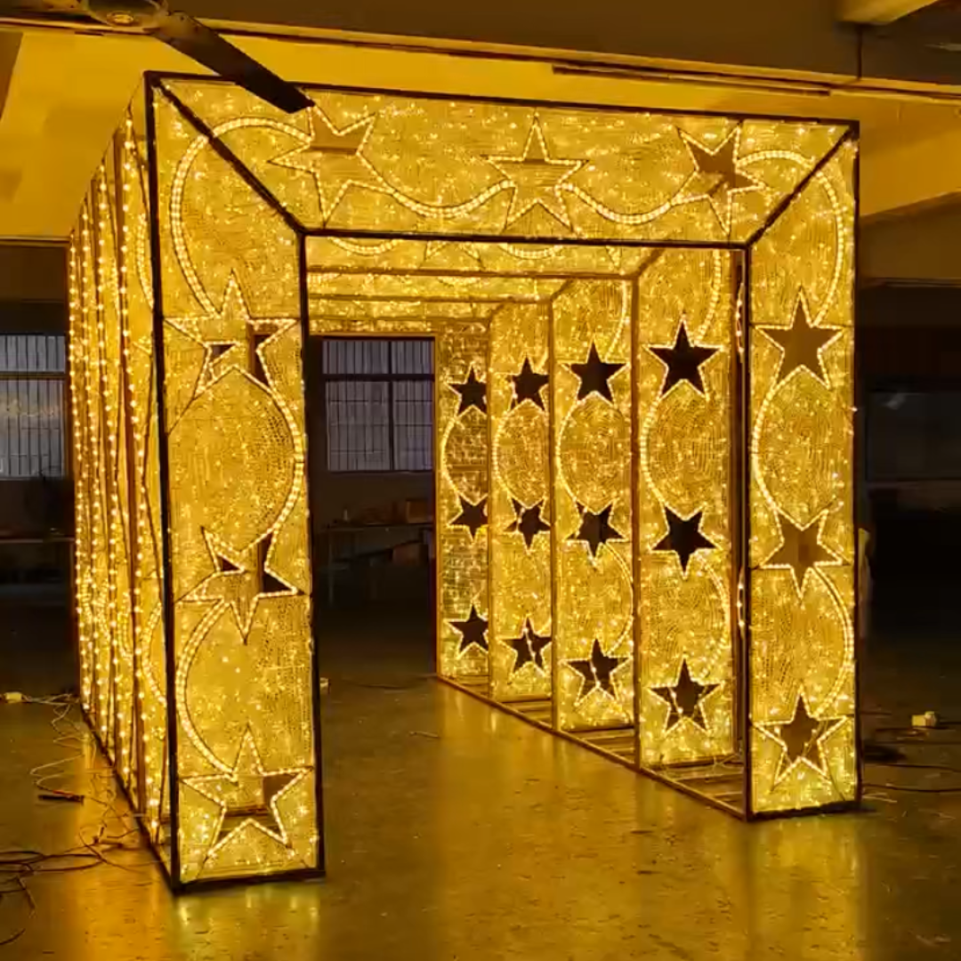 Built with durable materials and designed for maximum visual impact, this tunnel creates a stunning walkthrough experience. Its impressive size and glow make it a standout centerpiece for holiday displays, festivals, or public events.
